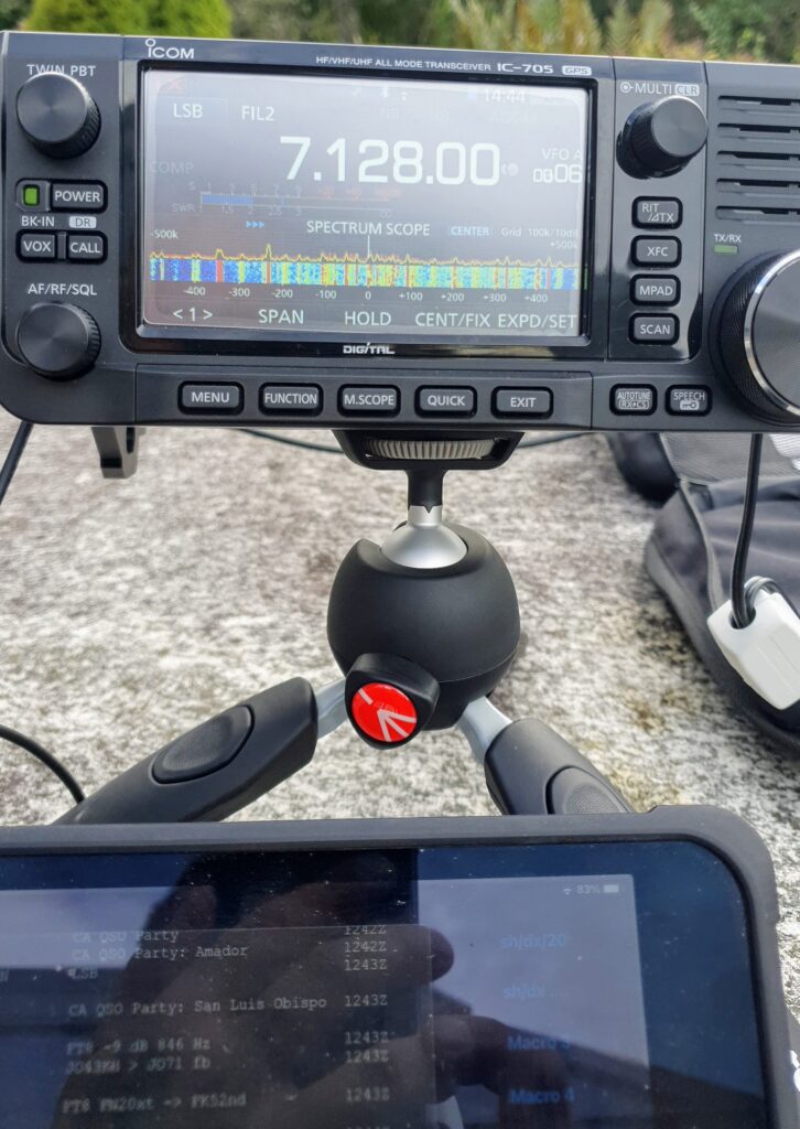 Ein super Setup um unterwegs QRV zu sein, die Antenne ist sehr schnell aufgestellt. Mit etwas Geduld war es kein Problem zu den Stationen DD0D im Harz und SQ9MDF/P aus Polen eine Verbindung herzustellen und einen WWFF Hunter Punkt zu holen. Ausgangsleistung 10 Watt mit dem kleinen externen Akku. Als Logsoftware natürlich RUMLog2Go auf dem Ipad.