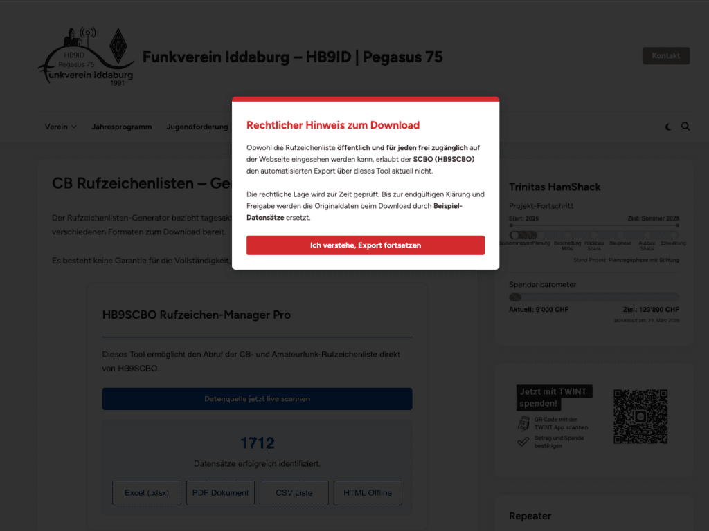 - Community-Service: Der Generator von HB9ID bietet einen Mehrwert, den die offizielle Seite in dieser Form nicht liefert (z.B. den direkten CSV/Excel-Export für eigene Logbücher).