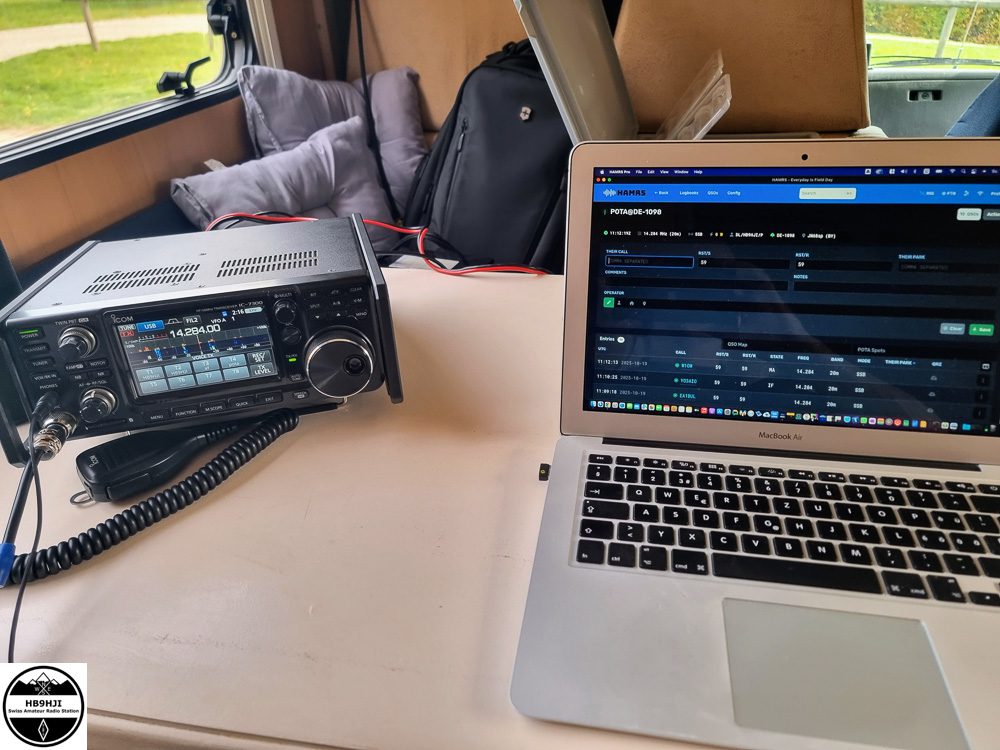 Für diese Aktivierungen war ich wieder einmal komfortabel aus meinem Wohnmobil QRV. Als Transceiver kam mein bewährter Icom IC-7300 zum Einsatz. Für die nötige HF-Abstrahlung sorgte eine selbstgebaute Endfed-Antenne für die Bänder von 40 bis 10 Metern, die sich erneut als zuverlässiger und schnell einsetzbarer Begleiter erwies.