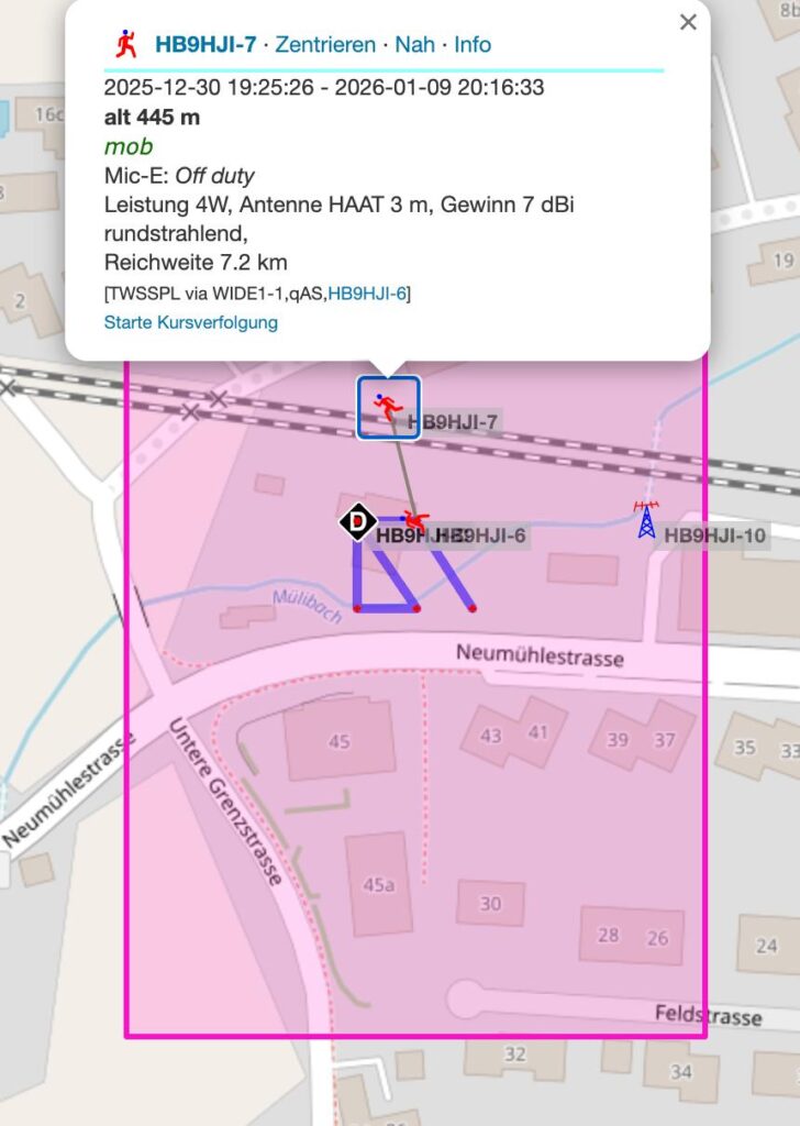 - Funktion: Empfangene Pakete von anderen Stationen in der Umgebung wurden zuverlässig an das Internet-Gateway weitergereicht. Auch die eigene Bake wurde (bei aktiver Einstellung) korrekt über das Internet übertragen.