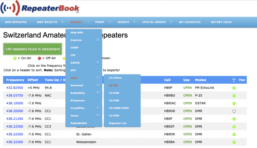 Wer kennt es nicht, es sollten mal wieder die Repeater im Transceiver auf den neuesten Stand gebracht werden oder eine Liste für den Urlaub gespeichert werden. Ganz einfach ist das über die Seite Repeaterbook zu erledigen.