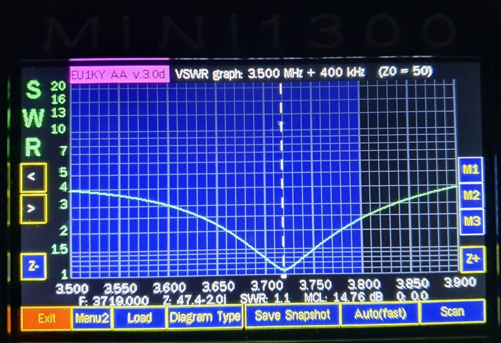 Ich habe die Antenne nachgebaut, allerdings jede Kabellänge ca. 4 cm länger, um auf ca. 3600 khz zu kommen.