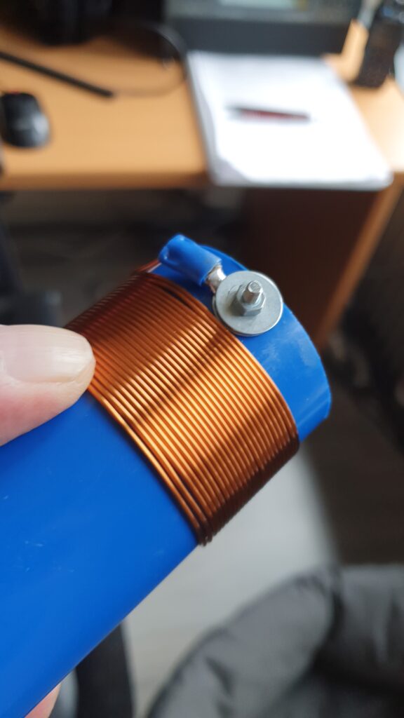 Material: Kupferlackdraht auf einem nicht-leitenden Spulenkörper (z.B. PVC-Rohr, Fiberglas).